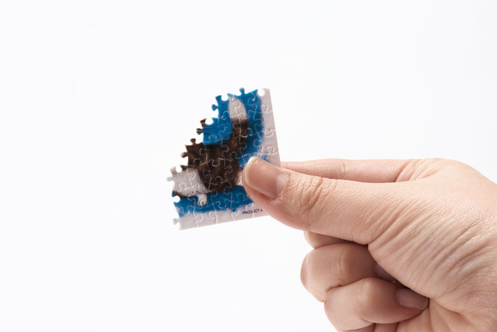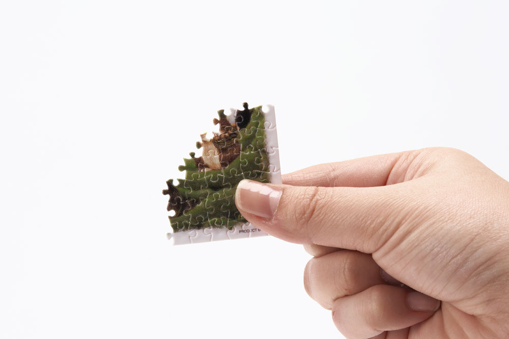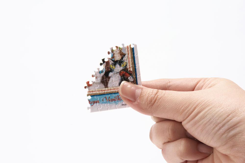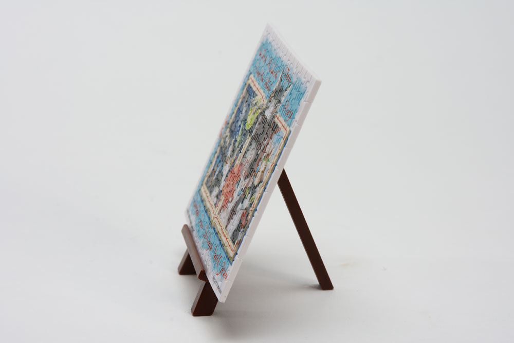 付属の手のひらサイズの小さなイーゼルに飾れば、可愛らしいインテリアになるミニチュアサイズのジグソーパズルです。
