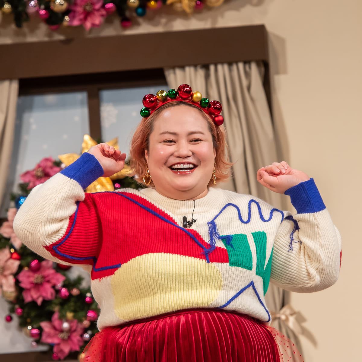 会場中央に位置する“きらめきクリスマスツリー”にゆりやんさんが触れると、ツリーが点灯し、女芸人3名によるクリスマス・パーティの幕開け☆