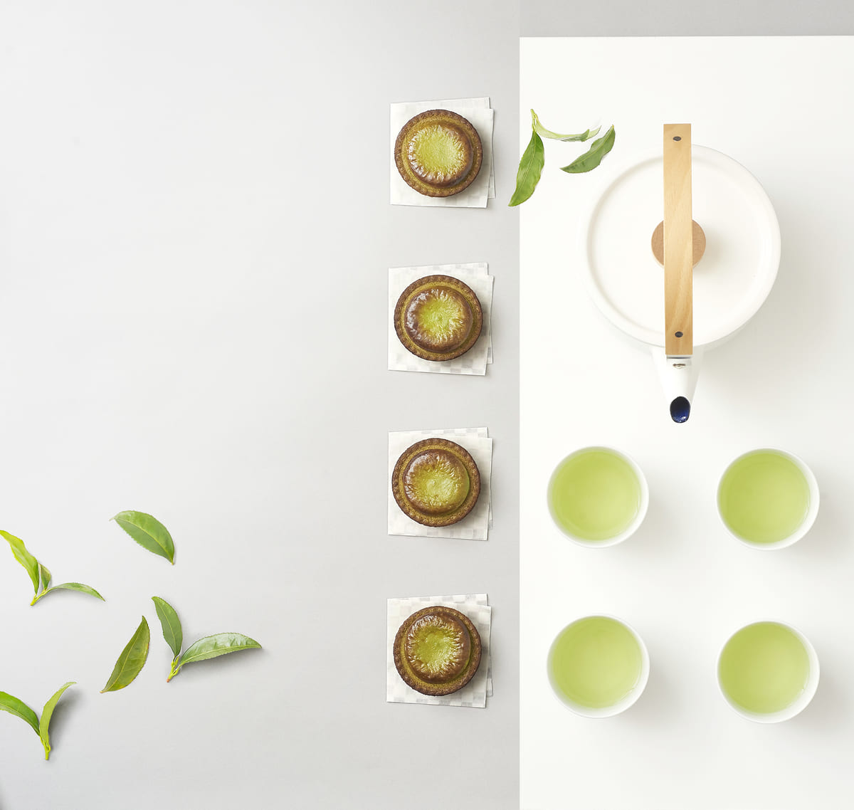 茶葉の選定や配合を行う茶師として最高段位の十段を持つ京都祥玉園・小林裕氏が、「BAKE CHEESE TART」のためだけに30種以上の宇治茶葉を巧みにブレンドした抹茶「ファースト・ビター」を使用。
