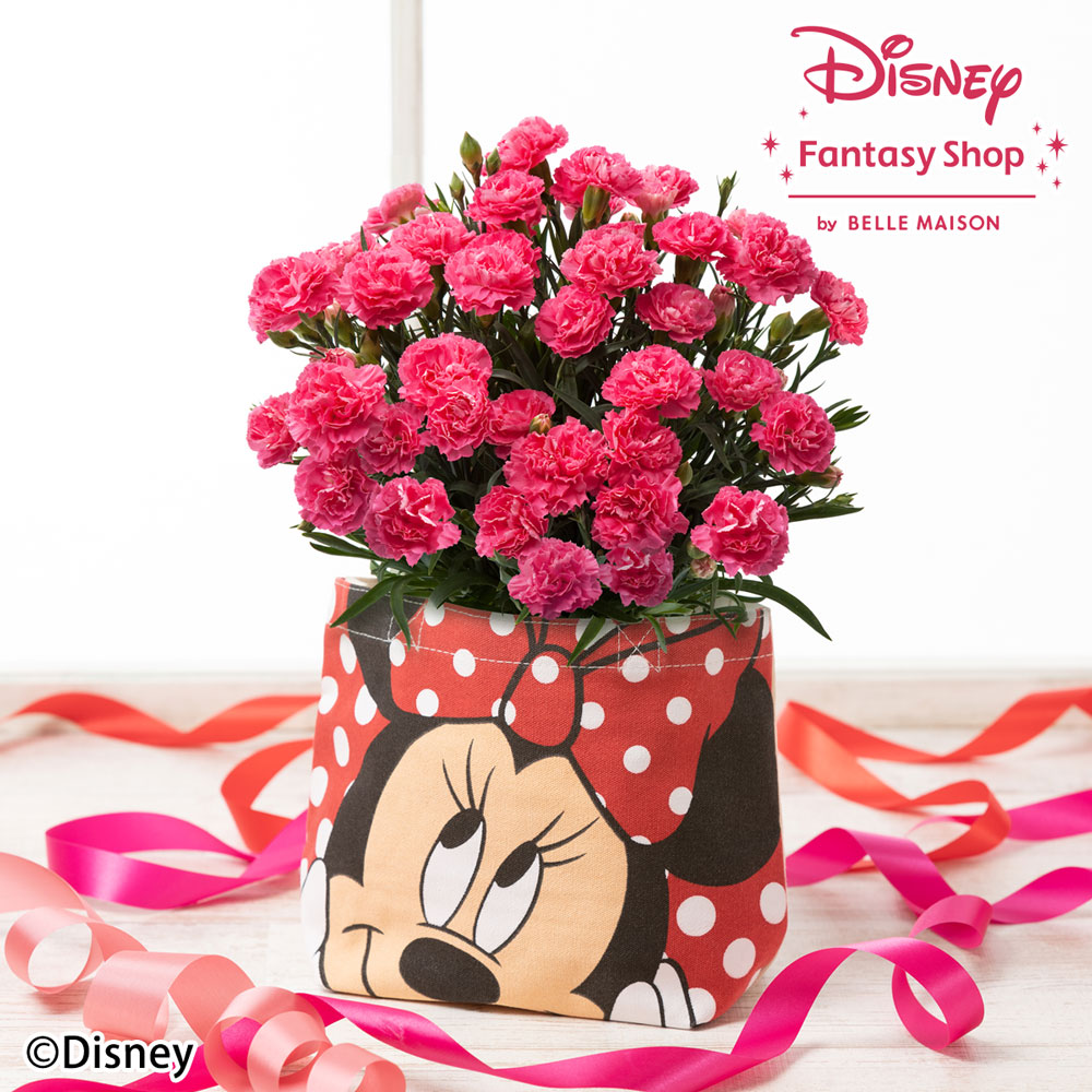 ディズニー 鉢植え「カーネーション クレア/ミニーマウス」は、定番のカーネーションを「ミニーマウス」のキュートなコットンバッグと一緒にした母の日にぴったりなフラワーギフトです。