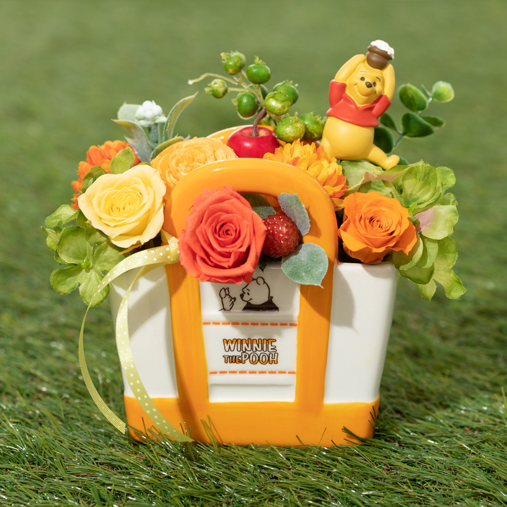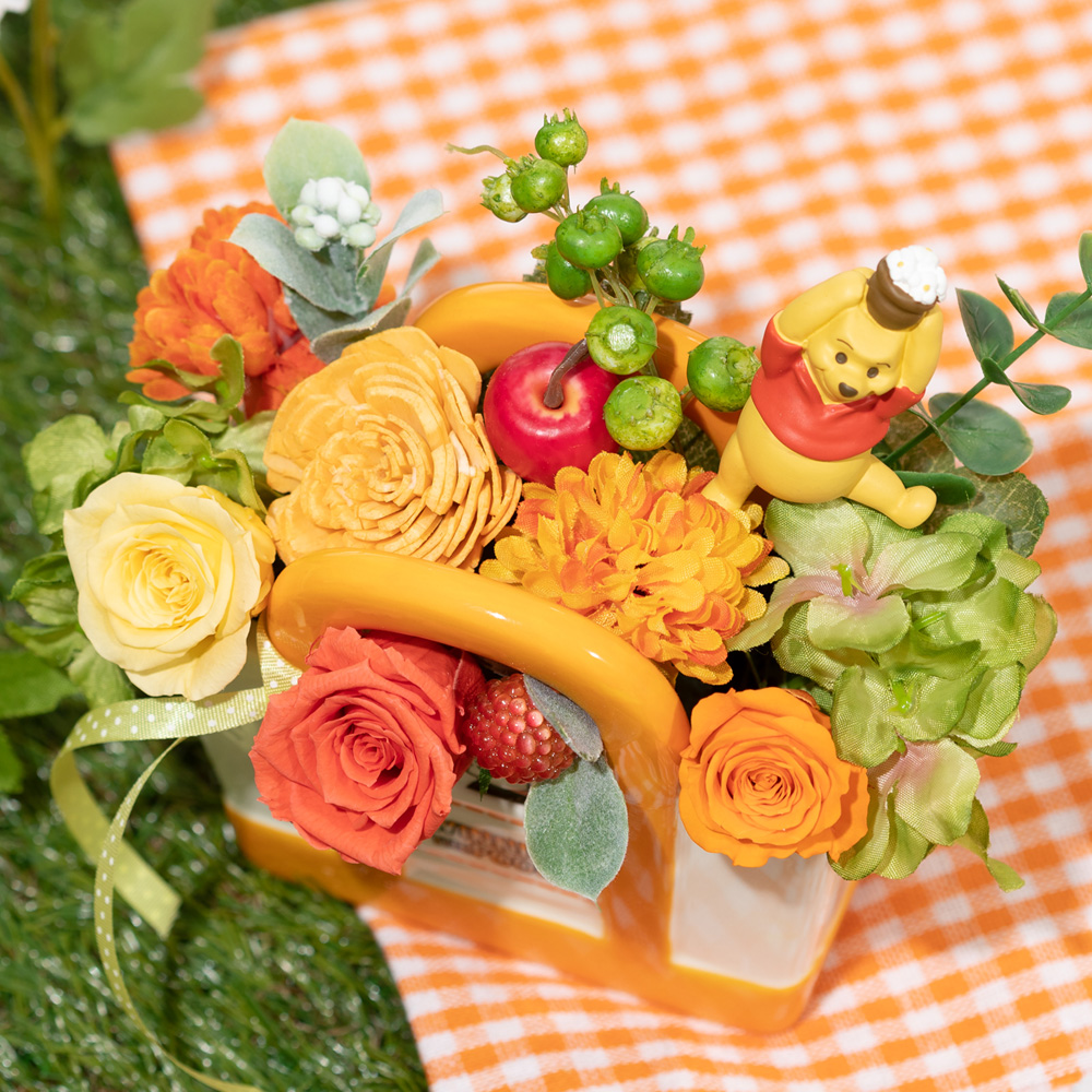 100エーカーの森の微笑ましい光景をイメージしたアレンジメント、ディズニー プリザーブドフラワー「サニーデイピクニック/くまのプーさん」