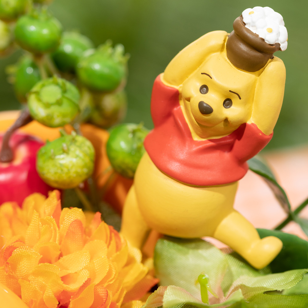 アイビー、姫りんご、野イチゴなど、くまのプーさんの住む100エーカーの森をイメージした花材がアクセントになっています。