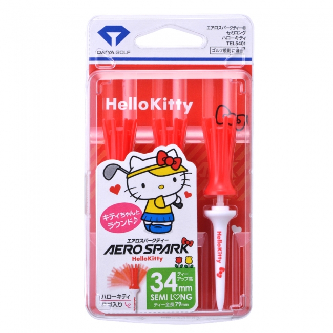 パッケージには、ダイヤゴルフオリジナルのゴルフウェアを着た「ハローキティ」がデザインされ、ティー本体にはトレードマークでもあるリボンとロゴがプリントされています。