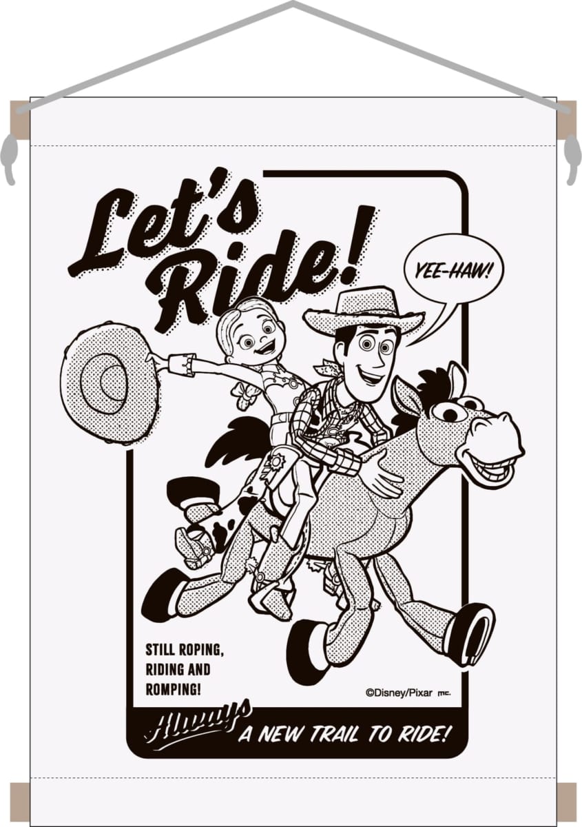 タペストリー描かれた「ブルズアイ」にまたがる「ウッディ」と「ジェシー」のイラストがカワイイ☆