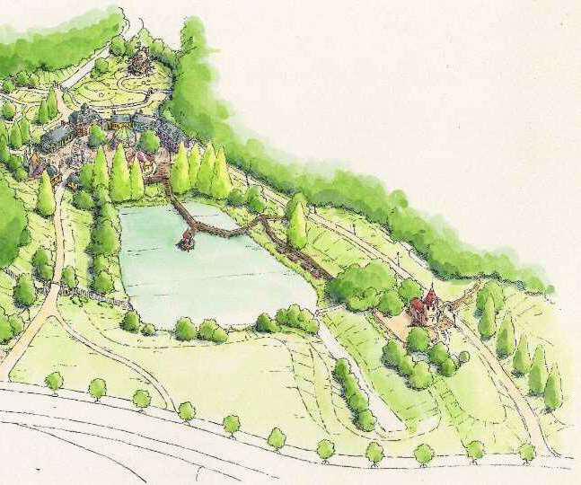 映画『魔女の宅急便』や『ハウルの動く城』などの北ヨーロッパ風の空間をイメージして整備される「魔女の谷エリア」
