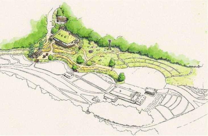 ほかにも体験学習施設として「タタラ場」や「炭焼き小屋」のほか、休憩場所なども整備されます。