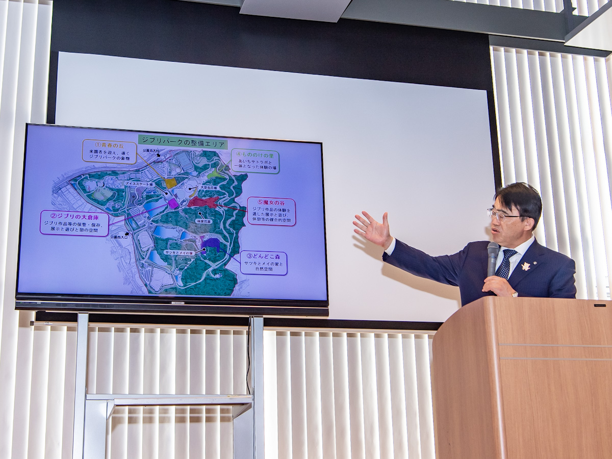 まずは愛知県 大村知事より、ジブリパーク整備の経緯、概要紹ついて説明が行われました。