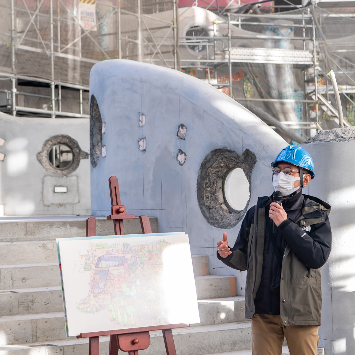 その後、場所を移しジブリパークの「工事現場撮影会」が行われました。