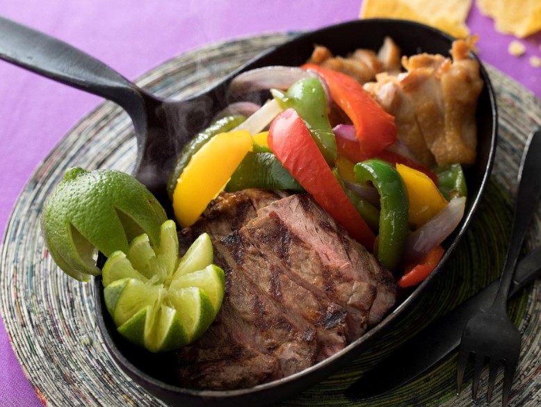 ビーフとチキン、野菜を豪快に炒めたメキシコの代表料理「ファヒータ」