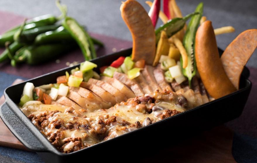 「ポークのロースト メキシカンチリチーズポテト」は、肉厚なポークをチリソースとチーズをたっぷりかけてオーブンで焼き上げたメニューです。