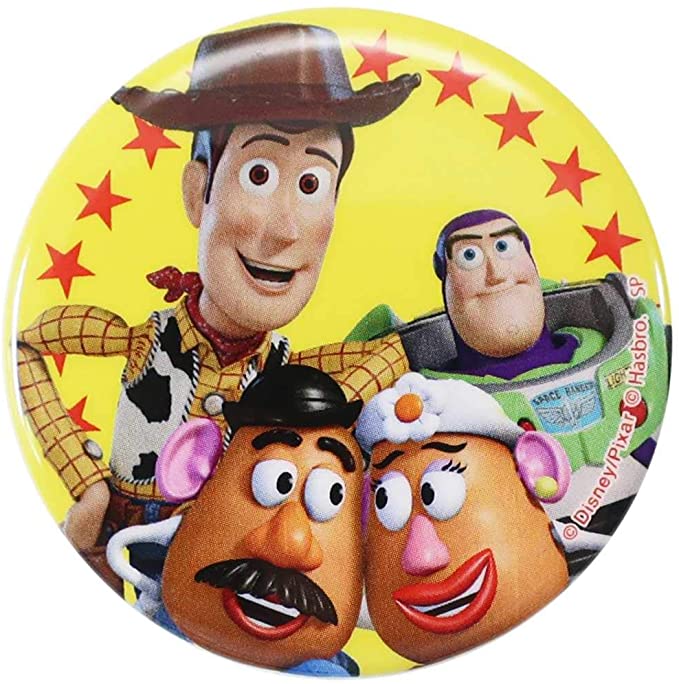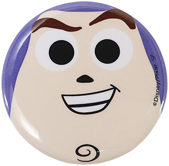 「バズ フェイス」デザインの缶バッジ。