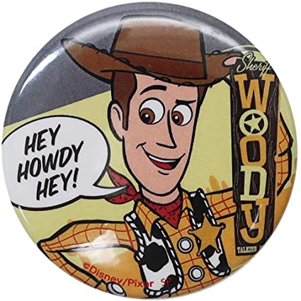 保安官のカウボーイ人形「ウッディ」デザインの缶バッジ。