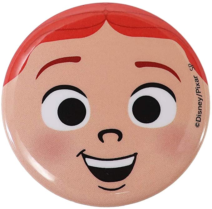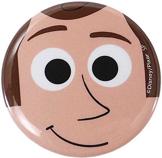 「ウッディ フェイス」デザインの缶バッジ。