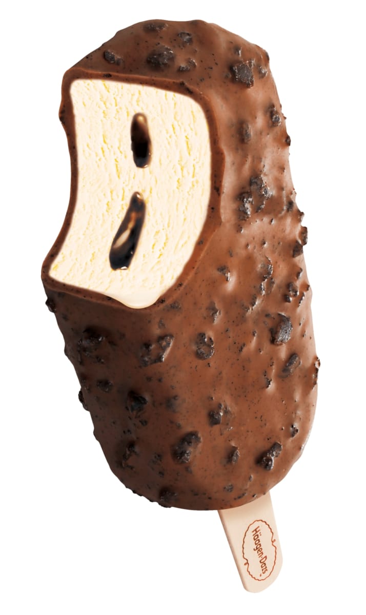 濃厚な味わいのマスカルポーネバニラアイスクリームに、キレのある苦みが特長のエスプレッソソースを組み合わせ、チョコレートクッキーを散りばめたチョコレートでコーティング。