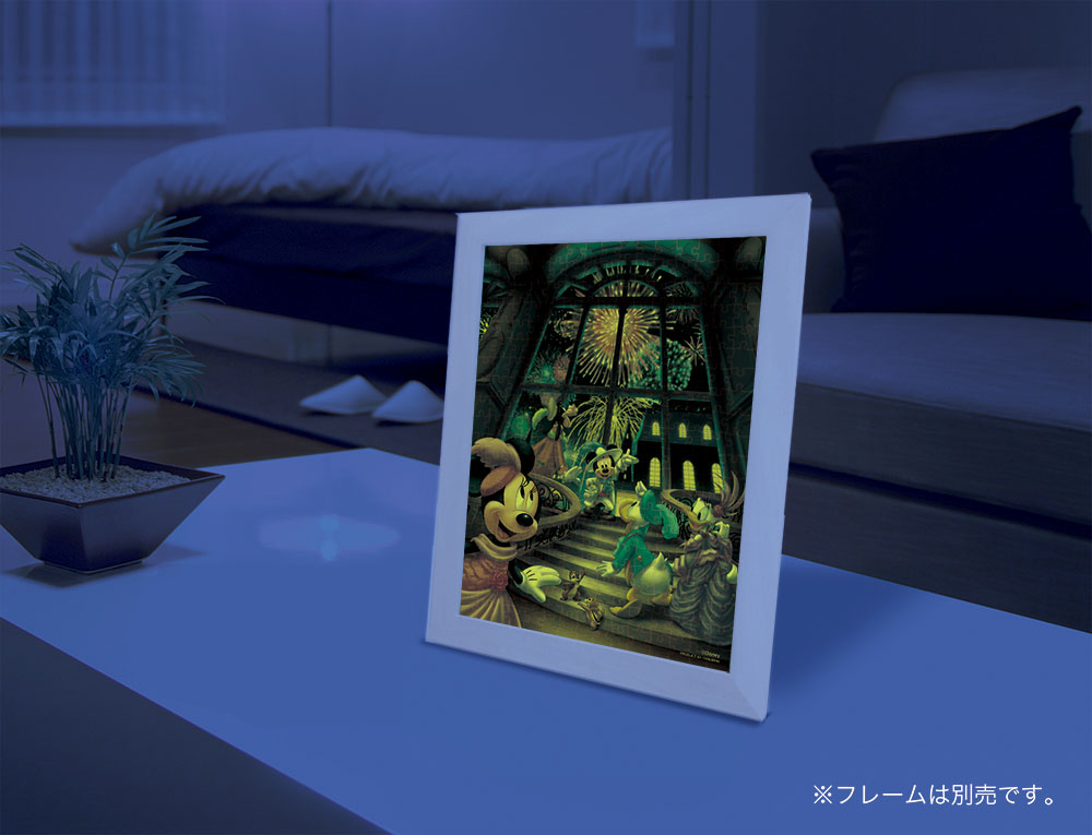 蓄光インクを使った特別な印刷をかけたジグソーパズルは、暗闇で絵が光るロマンティックなデザインが特徴。