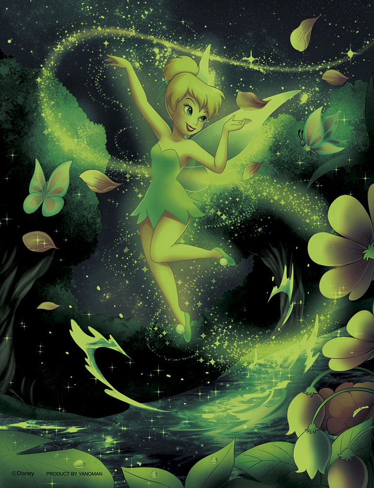 森の湖の上を踊るように舞う、元気いっぱいでチャーミングな「ティンカー・ベル」の魅力がいっぱい詰まったアートです。