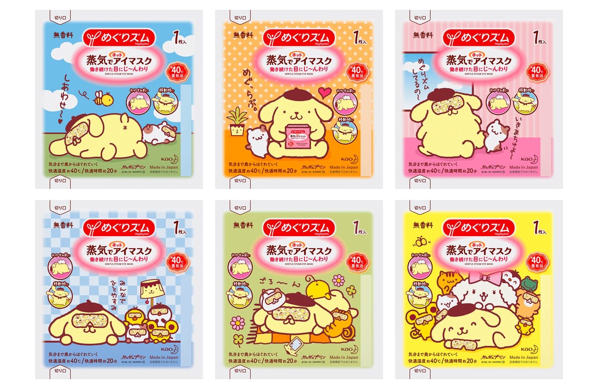 花王から発売されている「めぐりズム 蒸気でホットアイマスク」シリーズに、サンリオの人気キャラクター「ポムポムプリン」デザインが、数量限定で登場しました。