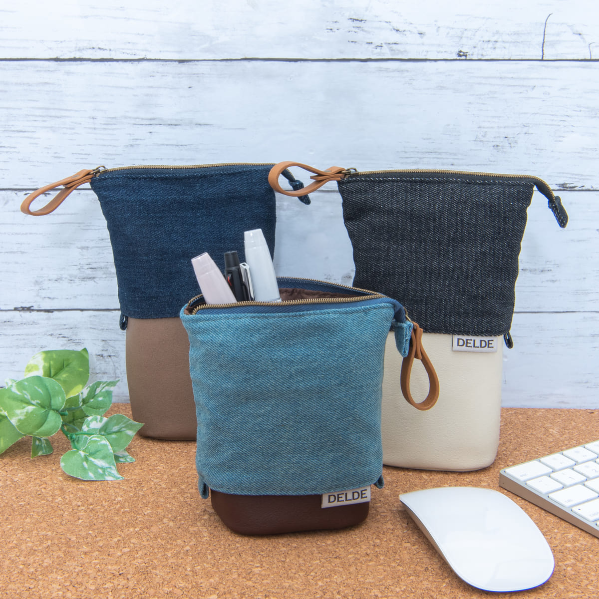 「ダークブルー」デザインの「ペンポーチ DELDE Denim Coorde」