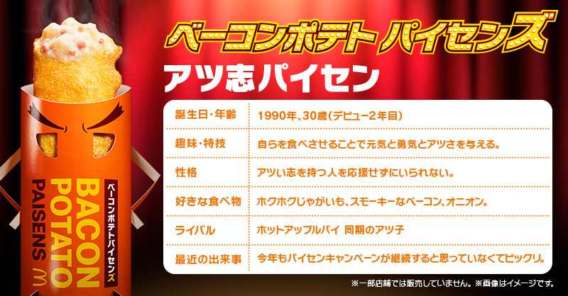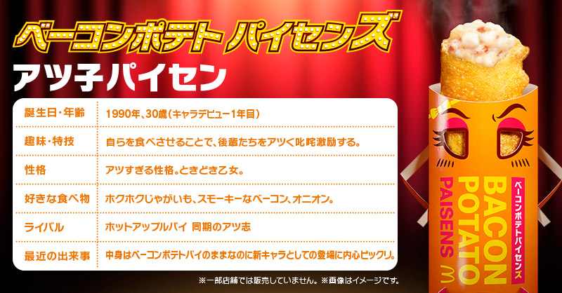 ホクホク&クリーミーな人気パイ「ベーコンポテトパイセンズ」がおいしさそのまま、新キャラクターも加わって2020年4月1日(水)より期間限定で全国のマクドナルド店舗にて販売されます☆