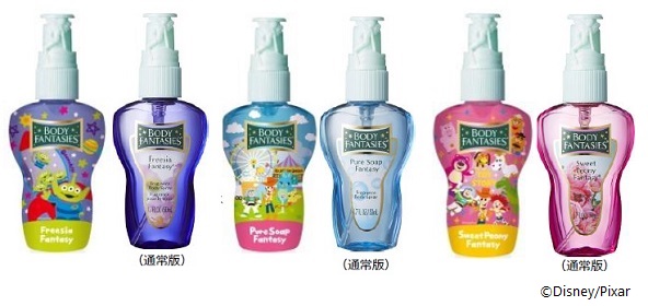 ボディファンタジー上位人気3商品の香りに「トイ・ストーリー」の世界を描いたスペシャルなデザインになっています。