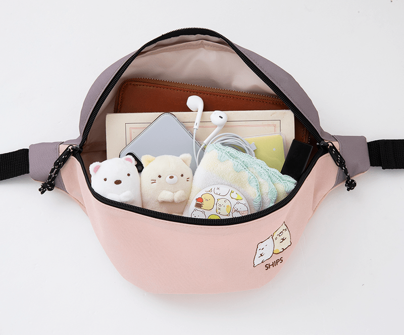 「すみっコ」たちの刺繍ワンポイントがかわいい、アクティブに動けるボディバッグです。
