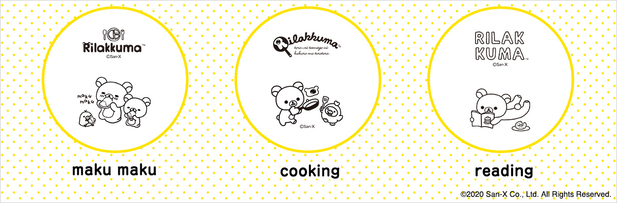 刻印デザインは、「リラックマ」たちのごゆるりとしたライフスタイルを楽しめる「maku maku」、「cooking」、「reading」の3種類。