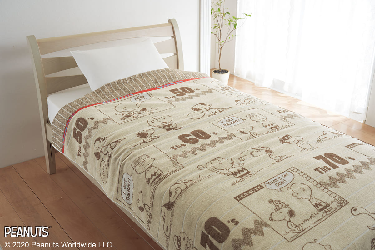 『PEANUTS』のキュートなアートをジャガード織で表現した「タオルケット」