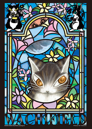 月の下で物言いたげなダヤンと、月見草がステンドグラス調に仕上げられています。