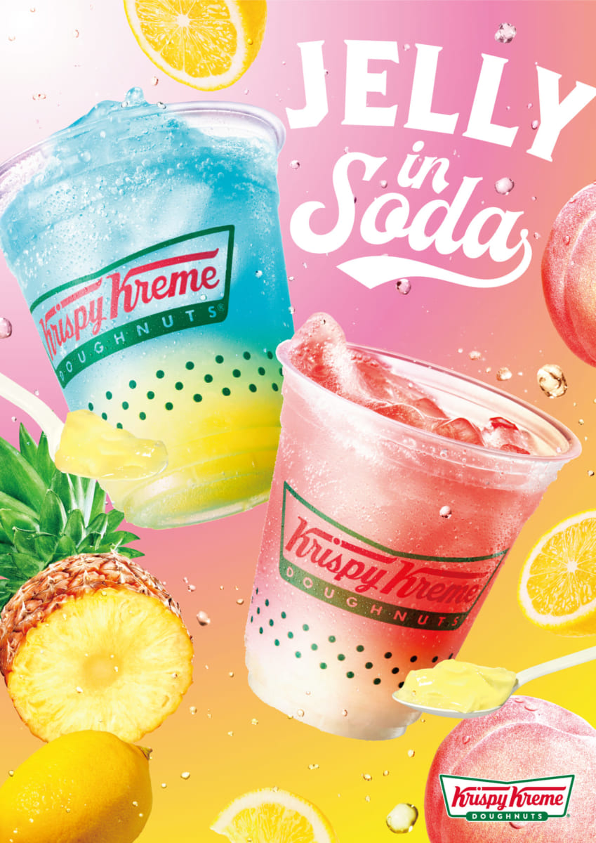 クリスピー・クリーム・ドーナツに、ジェリー×フルーツソーダの組み合わせが楽しめる、夏にぴったりな冷たい炭酸ドリンク「ジェリー in ソーダ」2種が登場!
