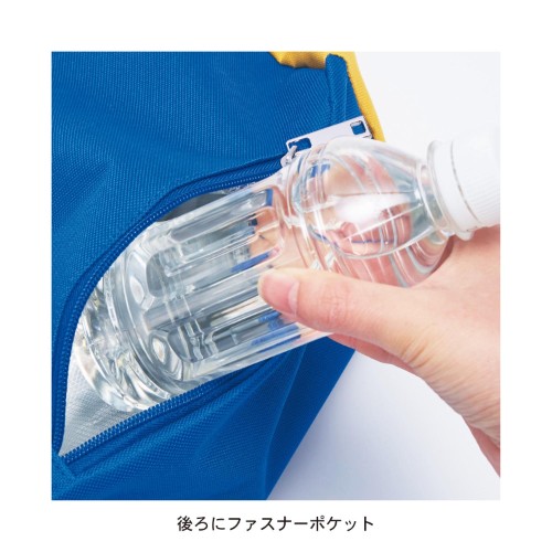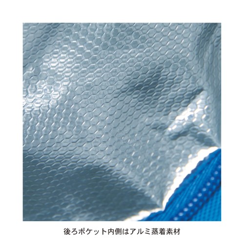 底面ポケット内側に保冷効果のあるアルミ蒸着素材を使用しているので冷たいペットボトルもそのまま持ち歩くことができます!