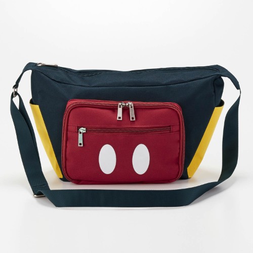 黒×赤、そして黄色を使用した「ミッキーマウス」デザインのショルダーバッグ。