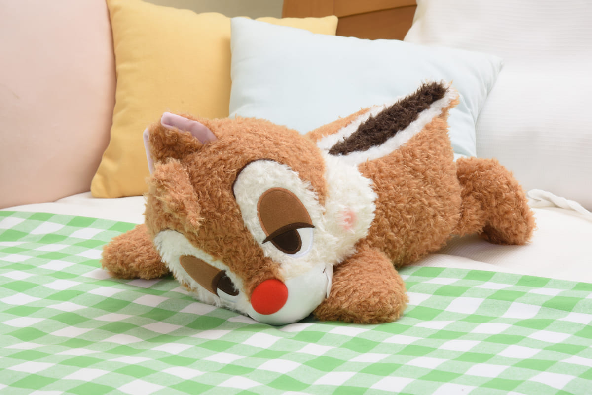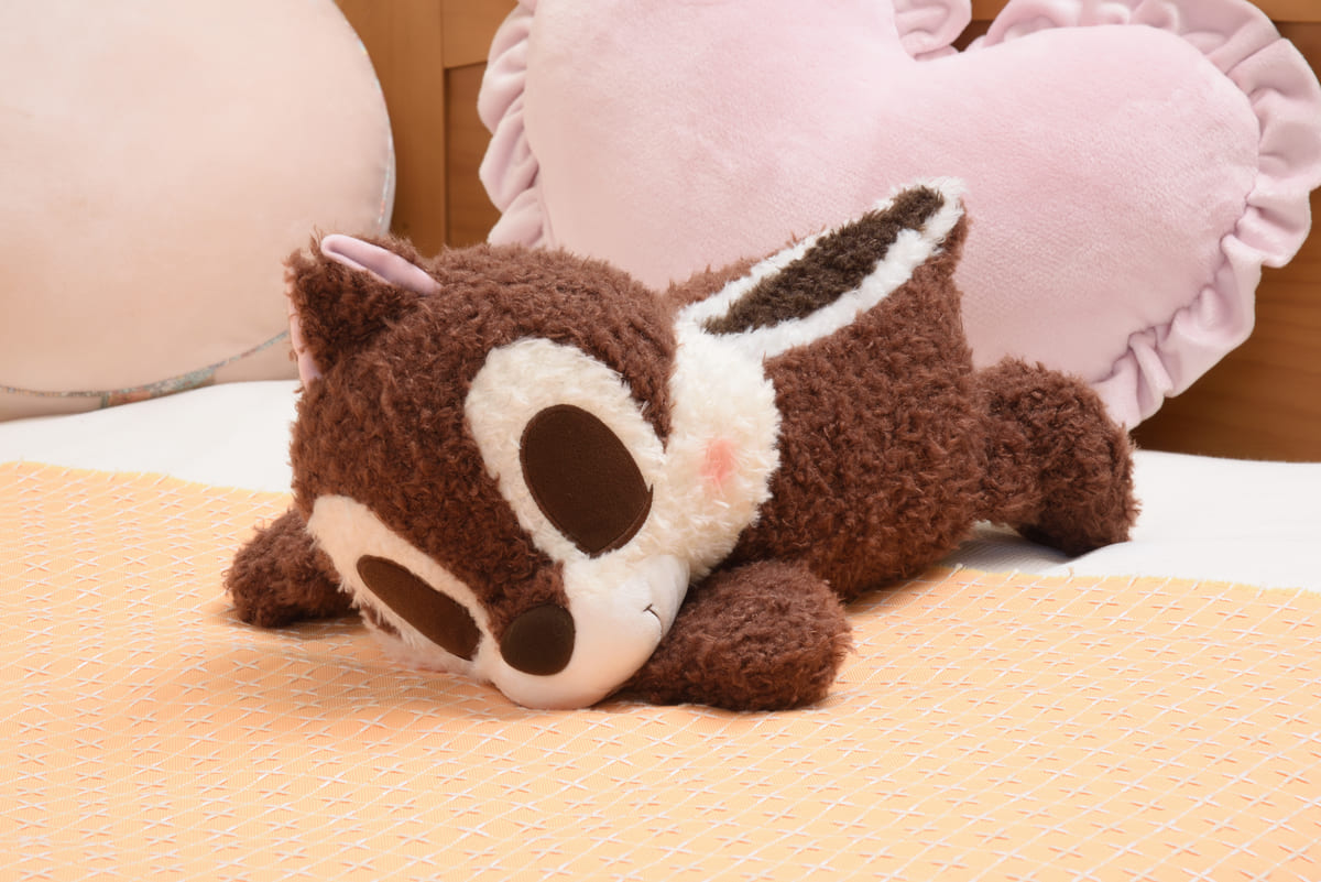 気持ち良さそうな寝顔の「チップ」の姿に、ほっこりと癒されるぬいぐるみです。