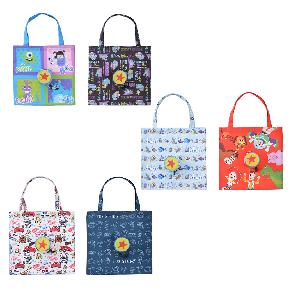 『ファインディング・ニモ』や「トイ・ストーリー」シリーズに登場するキャラクターたちがプリントされたエコバッグ。