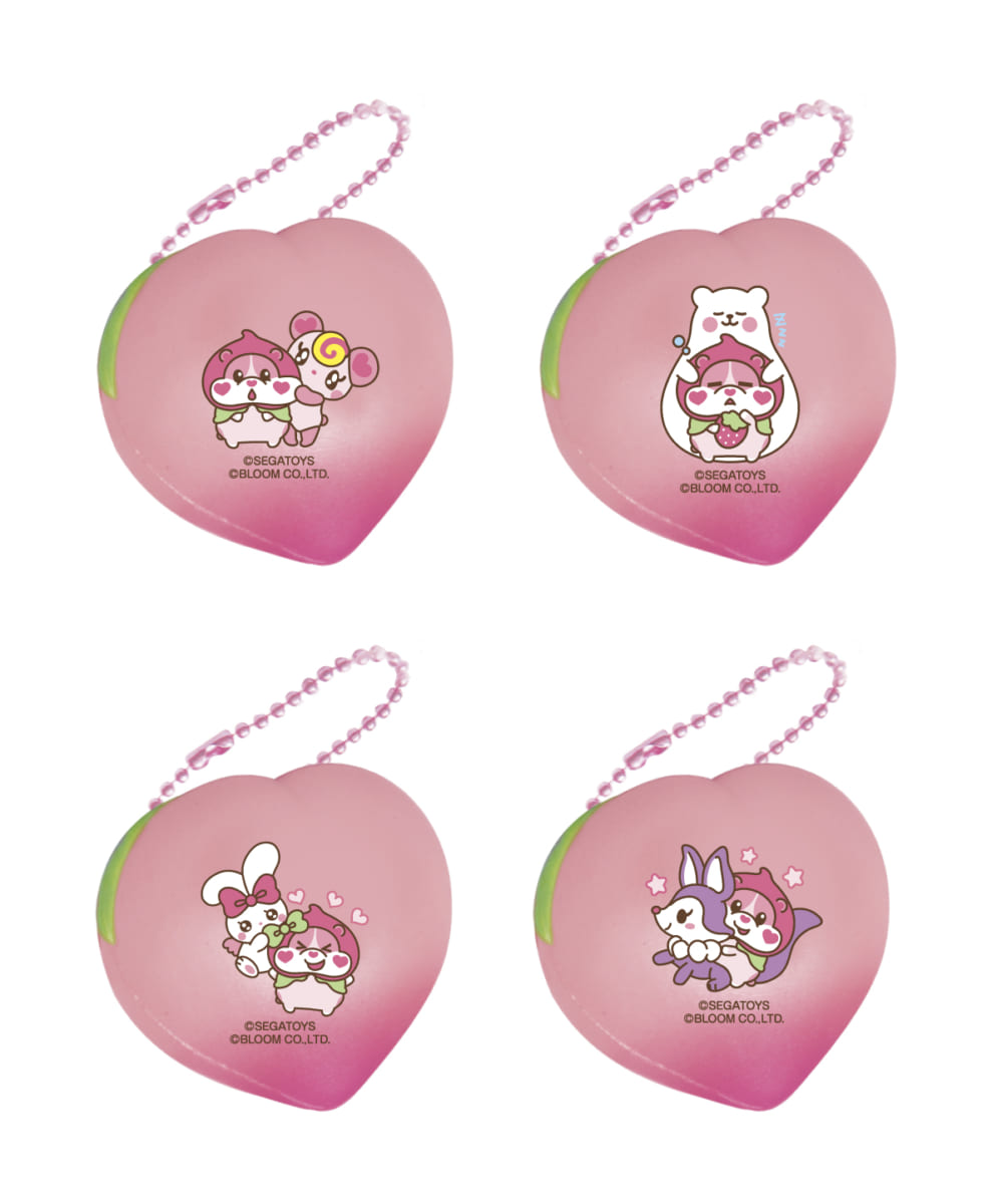 さらに、全世界で販売された「BLOOM」の大人気スクイーズ「アイラブピーチミニ」に桃もっちまるずとブルームの人気キャラクター4種がデザインされた香り付きのオリジナルアクセサリーも付属していて、『もっちりペット 桃もっちまるず』本体にボールチェーンで取り付けることができます。
