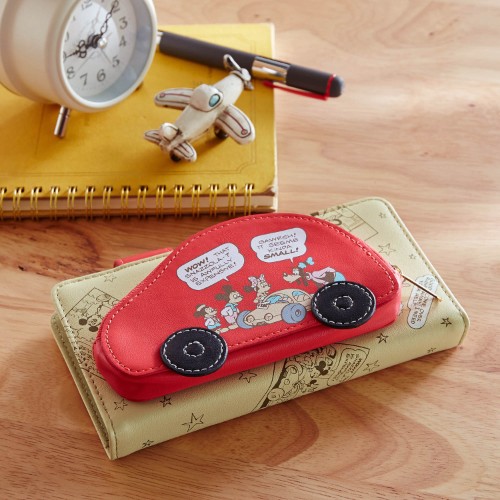 一面に「ミッキーマウス」や「グーフィー」たちのコミック風のデザインが施され、小銭入れは車のかたちになっています!
