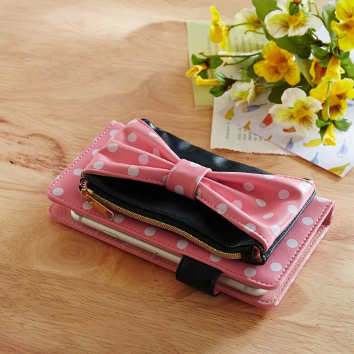 ピンク×白のドット柄がキュートな「ミニーマウス」デザインのスマートフォンケース。