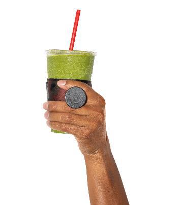 ソフトドリンクやホットドリンクのカップにセットできる「ポップグリップ・カップホルダー」