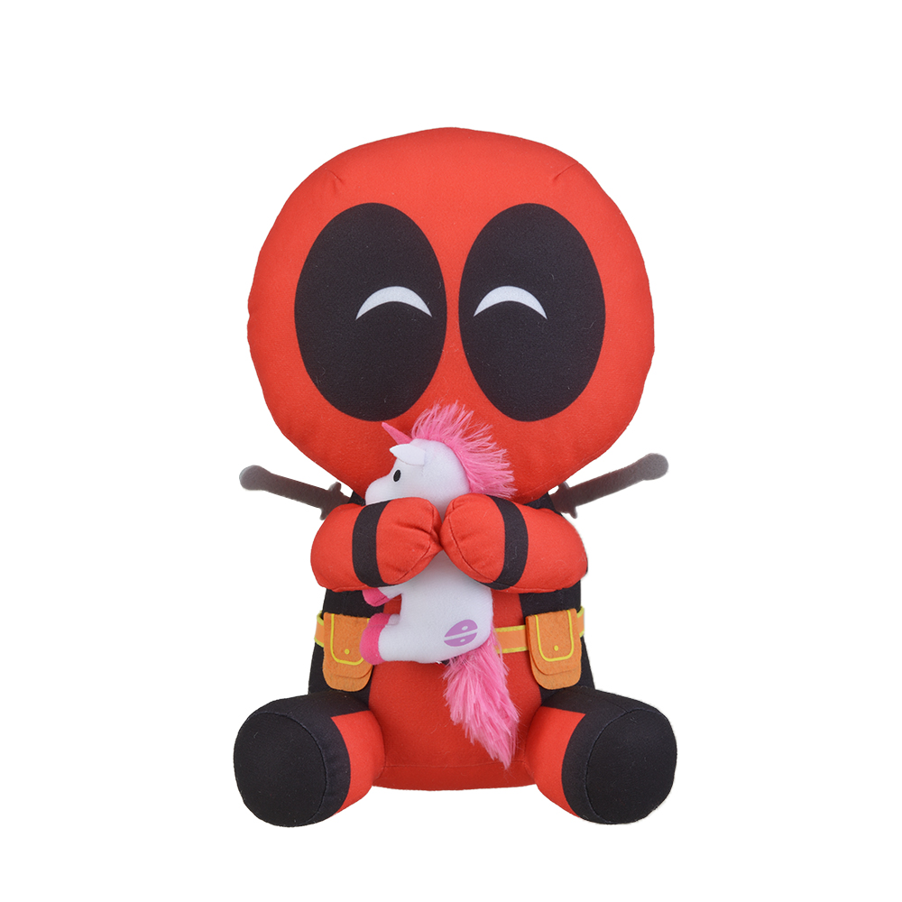 満面の笑みで「ユニコーン」のぬいぐるみを抱っこする「デッドプール」が愛らしく立体化されたぬいぐるみです。