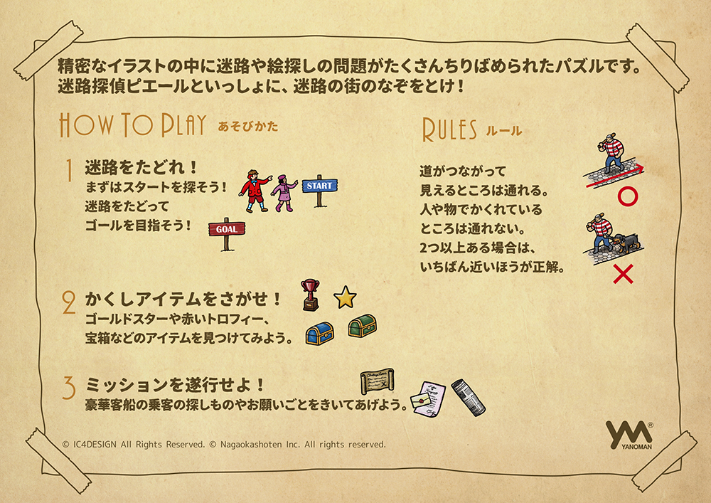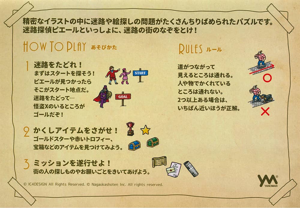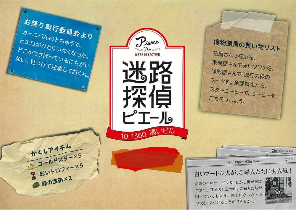 「迷路探偵ピエール」とともに、迷路の街の謎ときに挑戦できる、やりごたえばっちりの迷路パズル!
