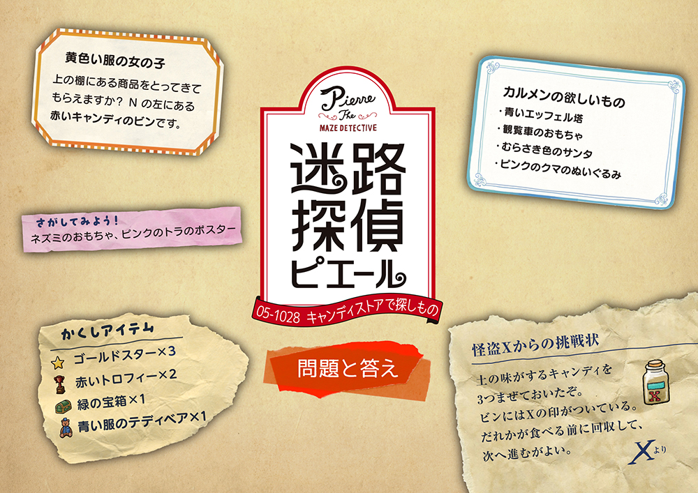 「怪盗X」からの挑戦状や、船長のおねがいなど、楽しい絵さがしの問題と答えの冊子がついています。