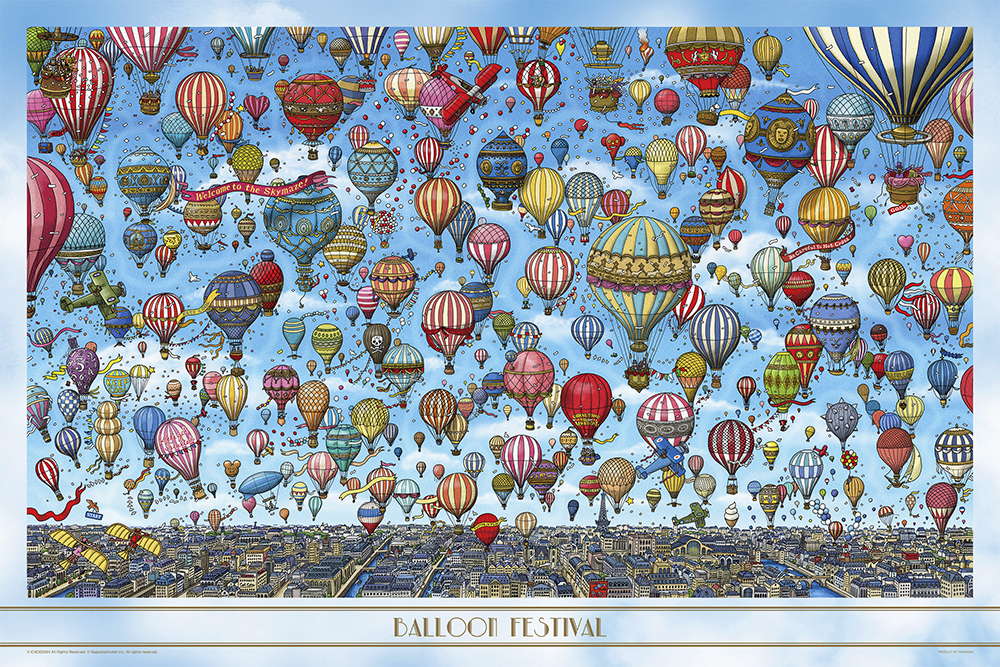 すべて異なるデザインの気球のアートを、眺めているだけでも楽しい一枚です。
