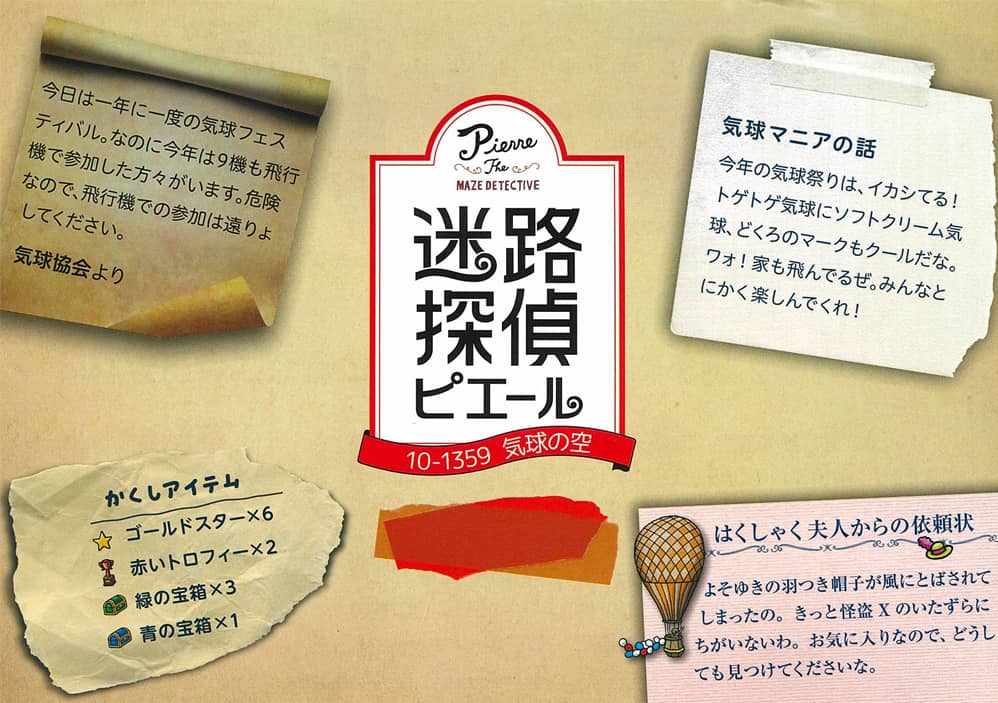 絵の中に隠された迷路や、たくさん浮かんだ気球の中から依頼人の帽子探しに挑戦!