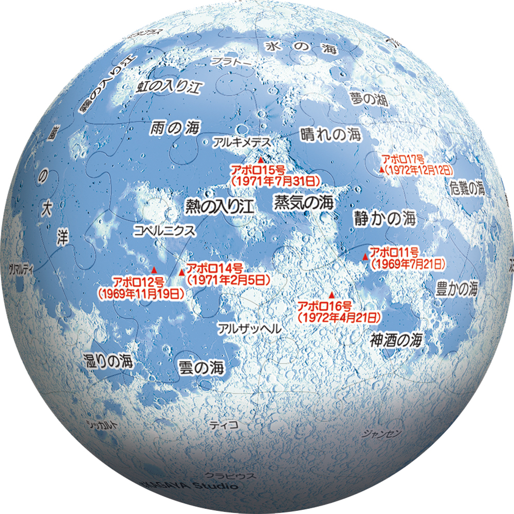 月の表面にある「海」と呼ばれる黒っぽい平らな部分の名も記載されています。