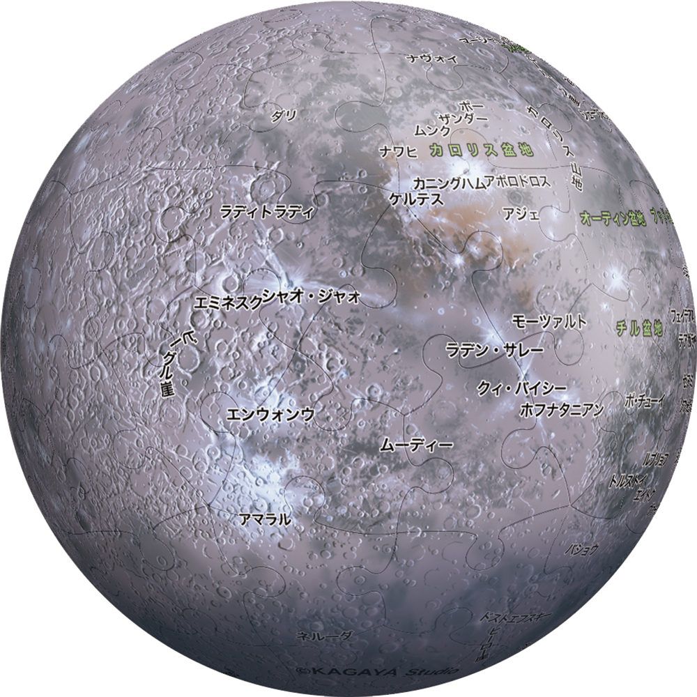 地勢型地球儀パズル・天文イラストの第一人者KAGAYA監修の下で制作された、地球や月、火星など、宇宙のロマンあふれる天体の立体パズル。