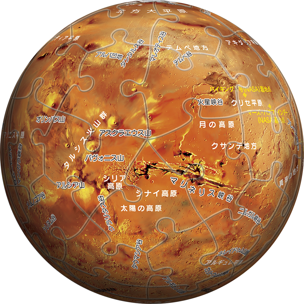 太陽系最大の火山であるオリンポス山など、火山、峡谷などの名も記載されています。