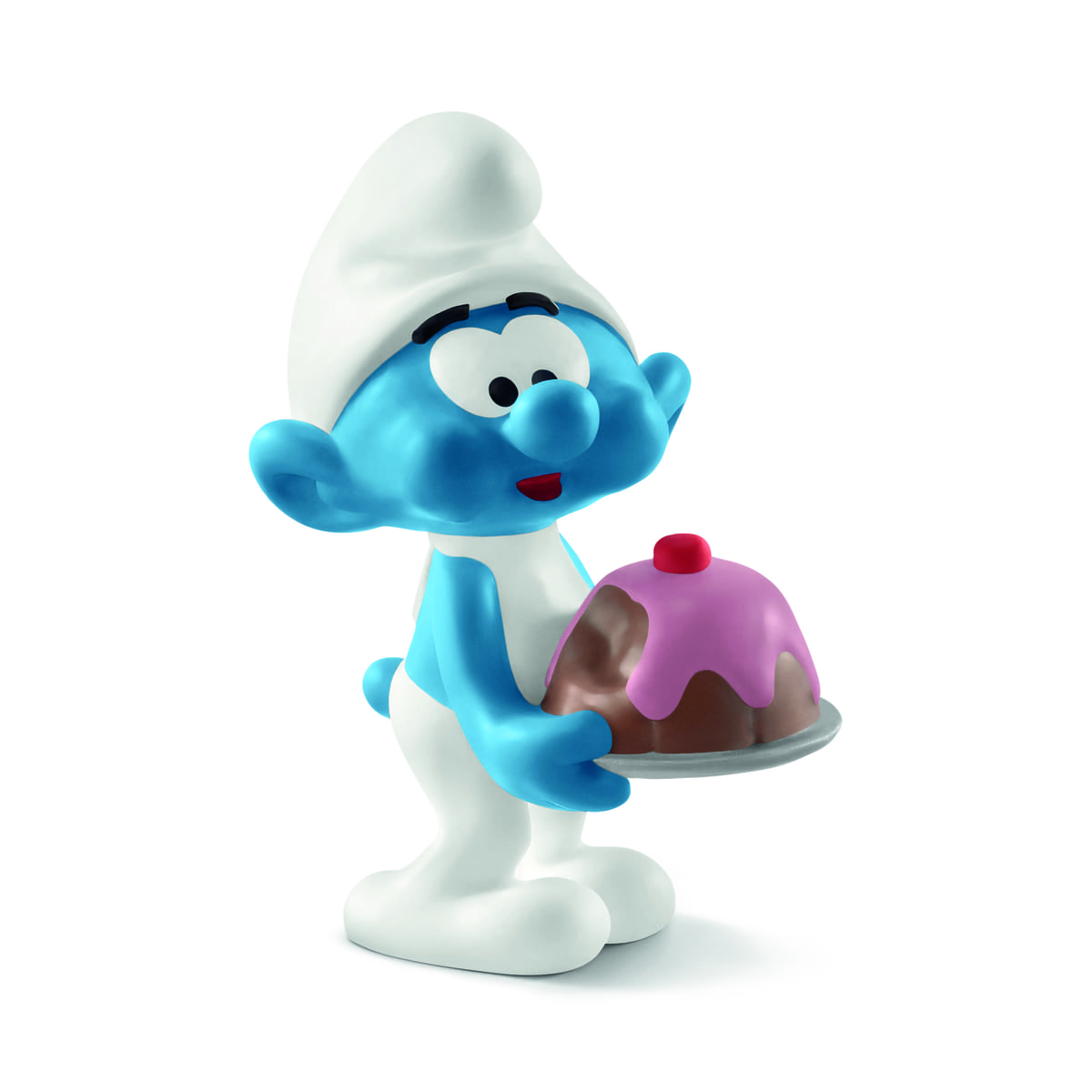 ケーキが大好きな食いしん坊「スマーフ・グリーディ」デザインのフィギュア。