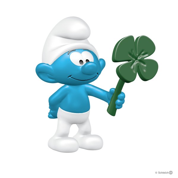幸運を運んでくれる“四つ葉のクローバー”を持つ「スマーフ」のフィギュア。