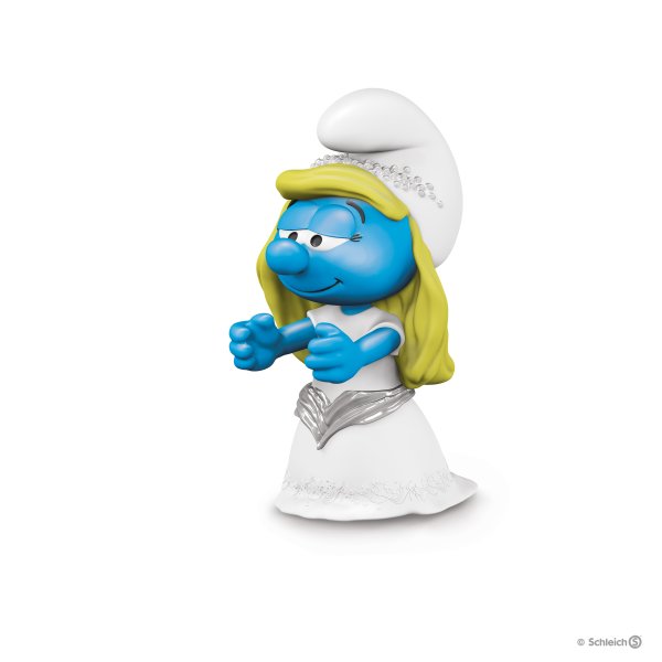 花嫁姿の「スマーフェット」が、とても幸せそうな表情でデザインされたフィギュア。