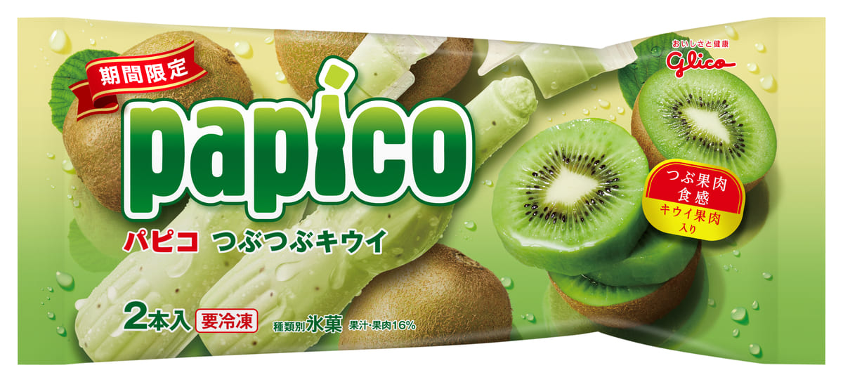 「パピコ」で初めての、キウイ果肉を使ったキウイ味が期間限定で登場。