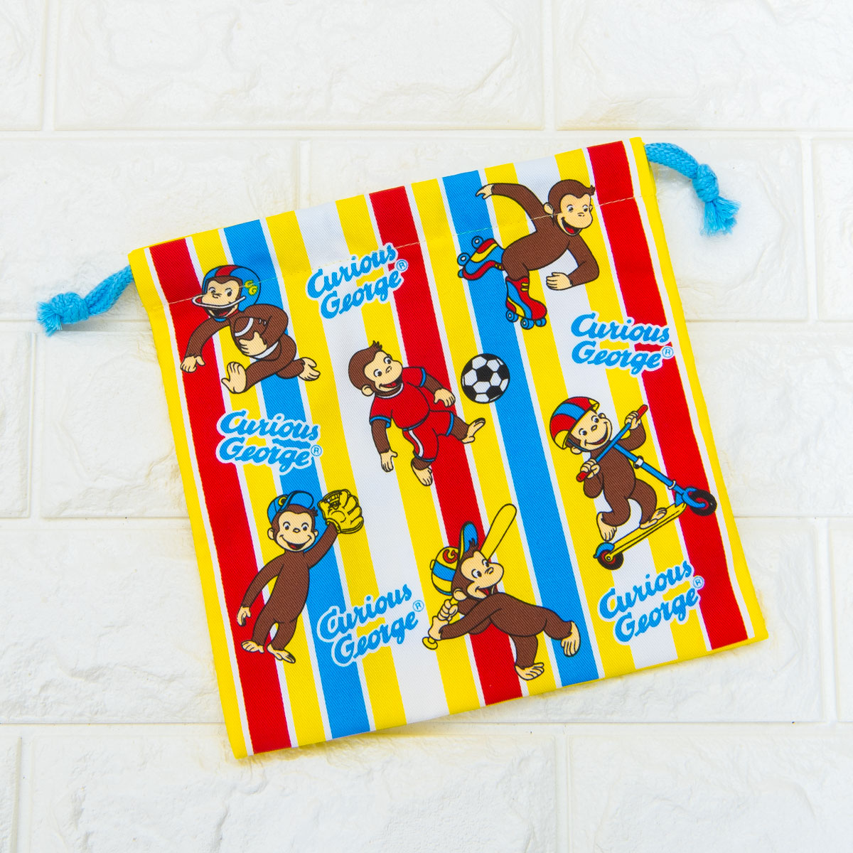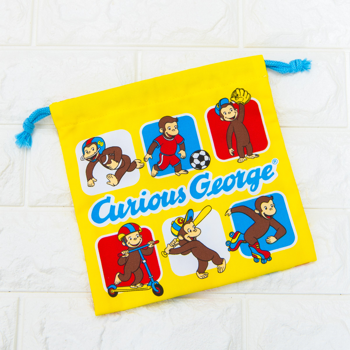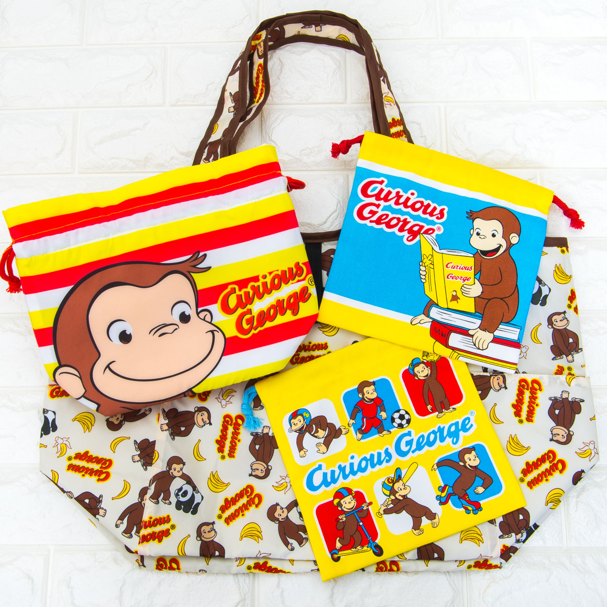 今回は、ポップに描かれた「ジョージ」の「巾着」、「マチ付巾着」、「アルミシート付くるくるショッピングバッグ」、「ミニショッピングバッグ」を紹介します☆